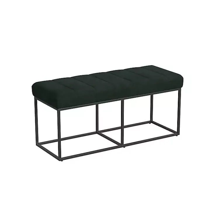 The Green Faux Suede Upholstered Metal Frame Bench will bring sophisticated seating into any space. While it flaunts a sleek, industrial design, the channel stitching adds a chic finishing touch.