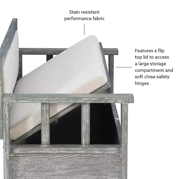 Add extra seating and storage to your entryway or kitchen with this Gray and Beige Carlton Storage Bench. Featuring a quaint, rustic look, this piece is sure to complement farmhouse or cottage decor!