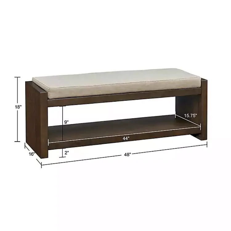 Fill out your entryway or complete your bedroom decor with our functional and stylish Brown Wood Bench with Cushion! This storage bench features a lower shelf that’s great for holding shoes or blankets, while a removable cushion provides added comfort.