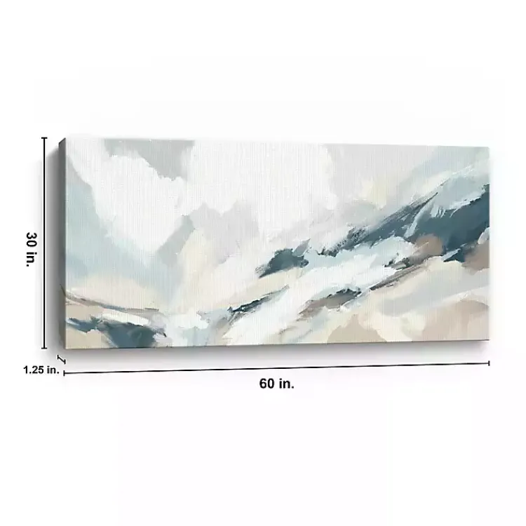 The blue and white brushstrokes of this Blue Seaside Abstract Canvas Art Print invoke the powerful waves of the ocean. It will beautifully fill empty wall space!
