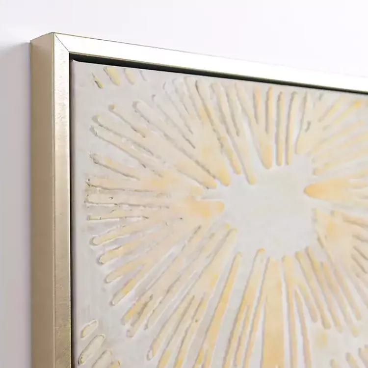 This Gold and White Abstract Framed Canvas Art Print fills any space with a bold, modern beauty. Its striking gold embellishments are sure to make your walls shine!