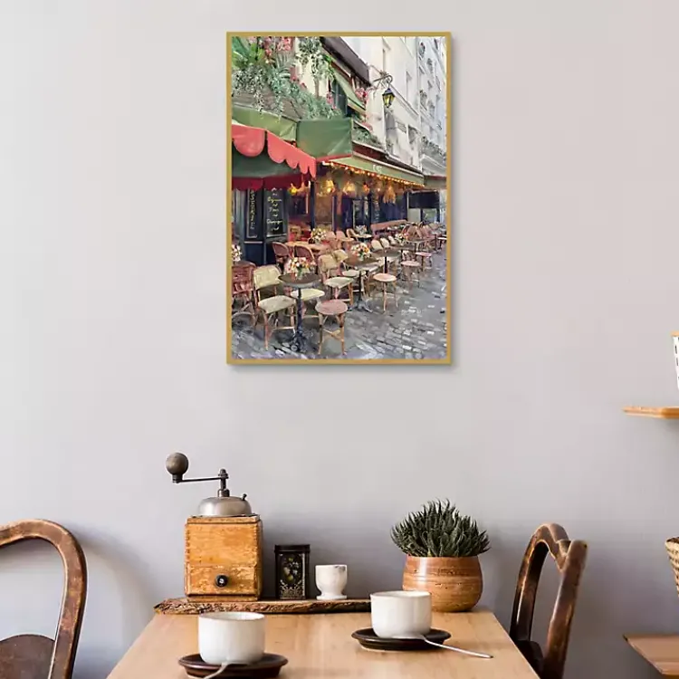 Allow our Sidewalk Cafe Framed Canvas Art Print to transport you to the early morning city streets of Paris. This canvas will make for the perfect finishing touch to your coffee space.