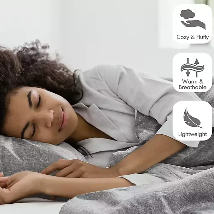 Crafted from soft and breathable microfiber, this Gray Chambray 3-pc. King Comforter Set is casual and comfortable. Lightweight, yet warm, it adds an extra layer of coziness that is perfect for year-round use.