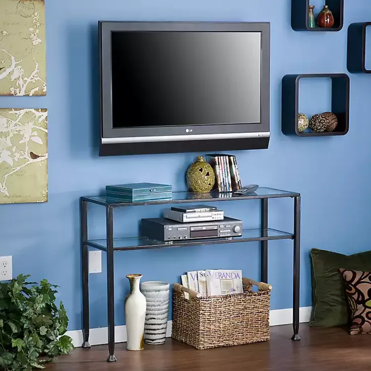 Decorate your living room with simplicity and elegance! The modern look of our Black Metal and Tempered Glass Console Table creates an eye-catching design that’s perfect for your space.