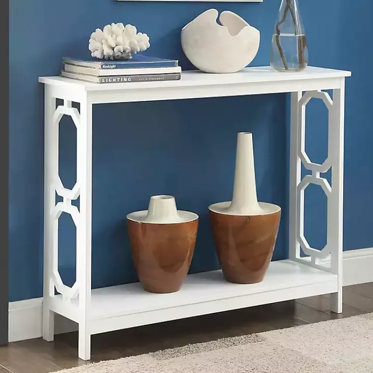 Update your space with the modern, geometric details of this White Octagon Single Shelf Console Table. Featuring clean lines and plenty room to display decor, it will make the perfect addition to your living room or entryway!