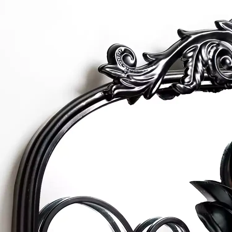With timeless details, our Black Scrolled Metal Overlay Wall Mirror will elevate any space. Its decorative overlay gives this mirror a unique beauty and dimension!