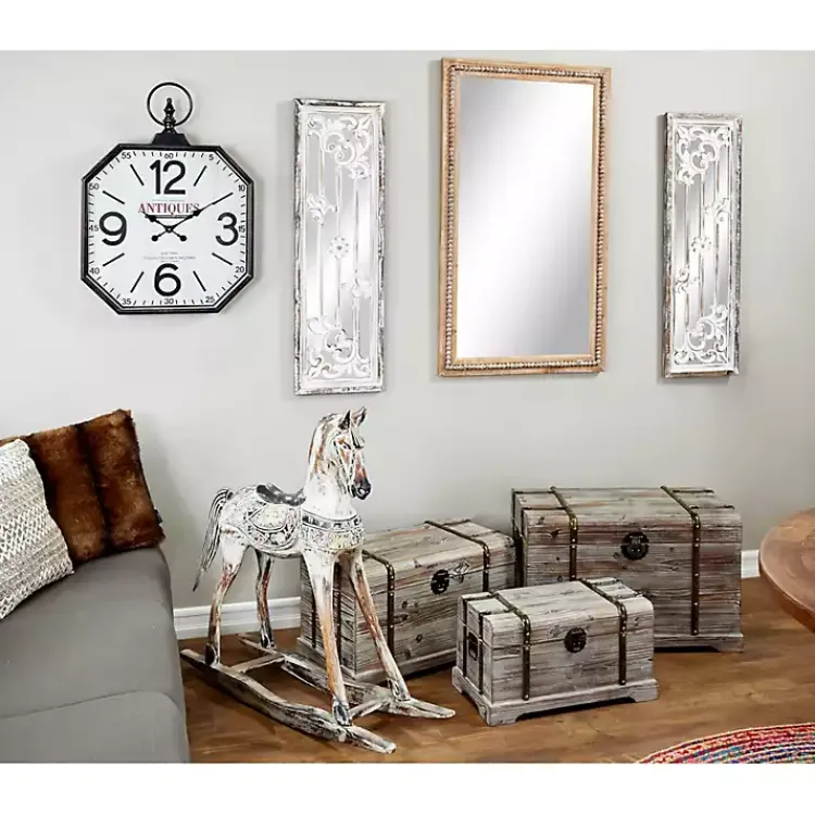 Spruce up any space with the help of a stunning wall mirror. You’ll love how our beautiful Distressed Brown Beaded Wall Mirror looks hanging up in your home.