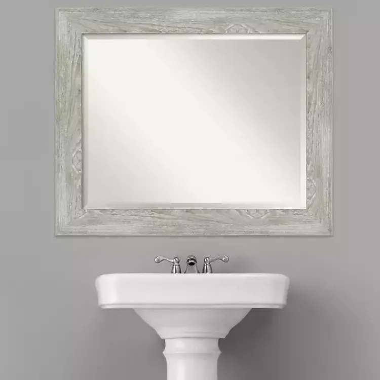 Our Dove Gray Scoop Frame Beveled Mirror will freshen up your walls with neutral, rustic style! The weathered woodgrain finish suits any décor style from farmhouse to contemporary.