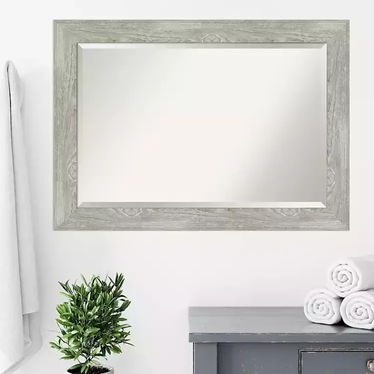 Our Dove Gray Scoop Frame Beveled Mirror will freshen up your walls with neutral, rustic style! The weathered woodgrain finish suits any décor style from farmhouse to contemporary.