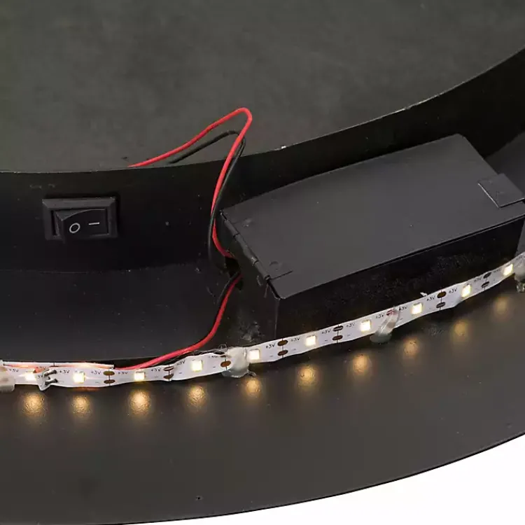 Illuminate any hallway, bedroom, or vanity with this Drew II Black and Gold Round LED Mirror. You’ll love how it adds modern flair to your décor while adding a soft glow to your space!