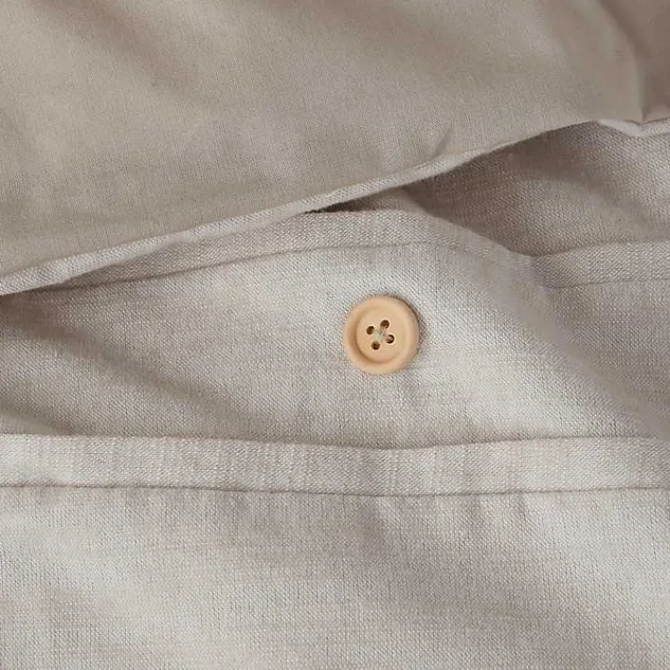 - Duvet cover and shams feature tan button accents