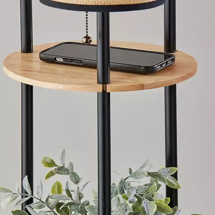 The Natural Woven Shade Trio Rowan Floor Lamp will light up your home with a sense of contemporary elegance. The tiered shelf base lends a modern flair and unique contrast to the natural woven shades.