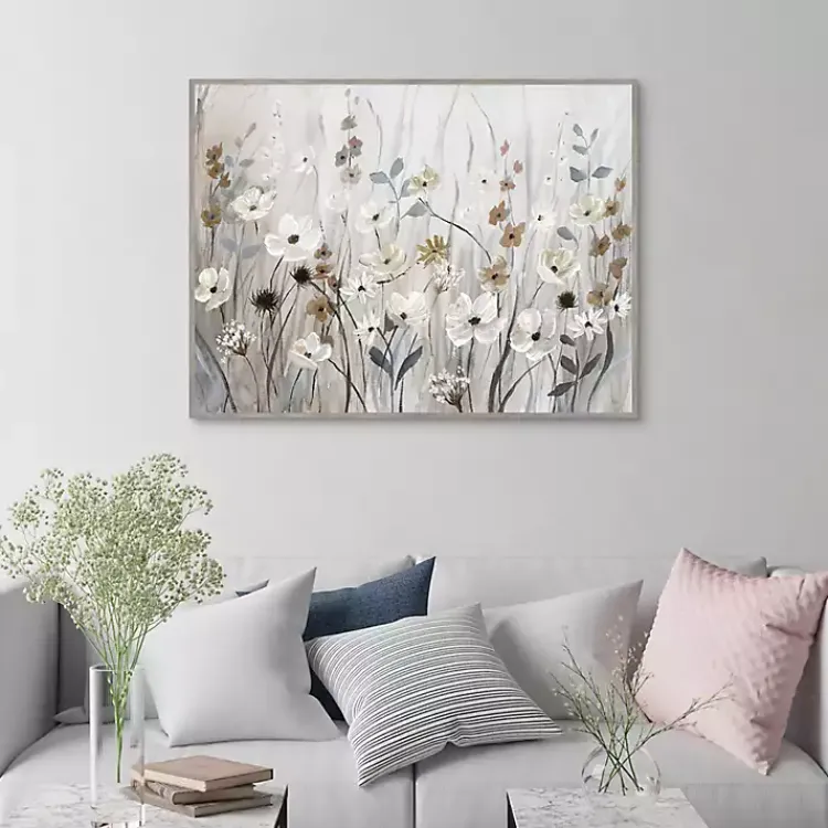 Make any space blossom with elegance by adding our Misty Meadow Framed Canvas Art Print to your walls! You’ll love how the neutral-colored petals seem to float off the canvas.