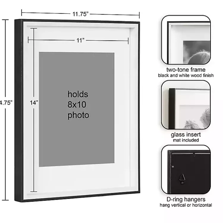 Set includes four (4) picture framesEach frame measuresWidth11.75 in.Depth1.18 in.Height14.75 in.