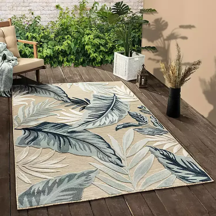 Make your coastal-inspired space look fresh and welcoming with this Large Print Tropical Leaf Outdoor Area Rug! This leafy style is perfect for warm summer nights on the veranda.
