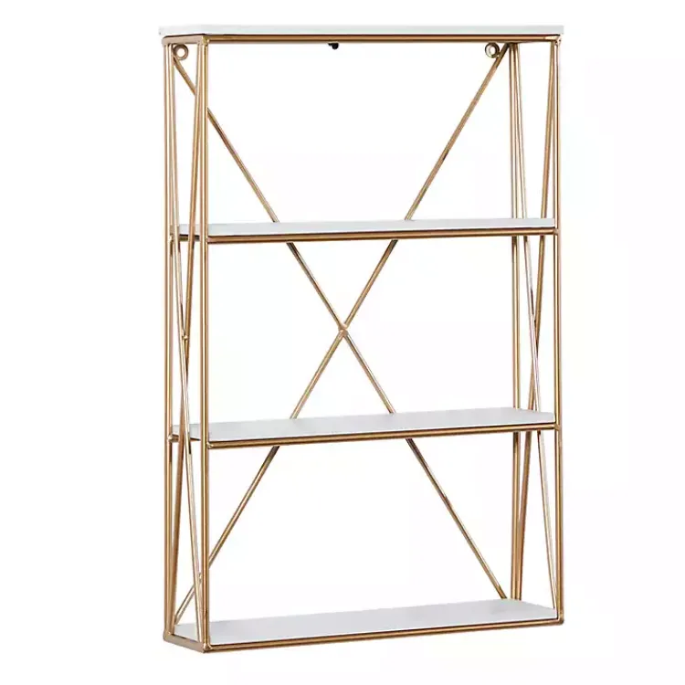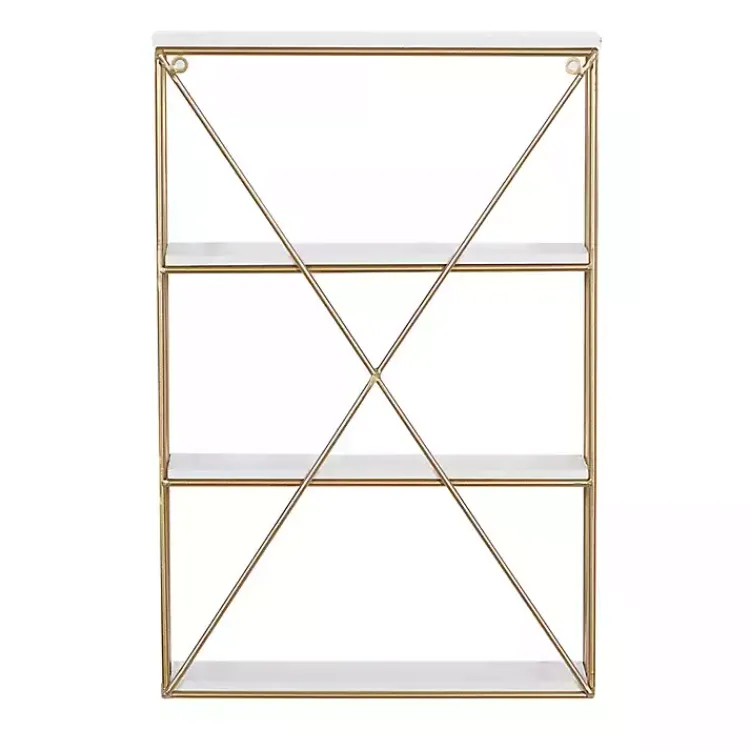Fashion and function come together with our stunning Gold X-Frame Daisy White Wood Wall Shelf. You’ll love having this beautiful wall shelf hanging up in your home.