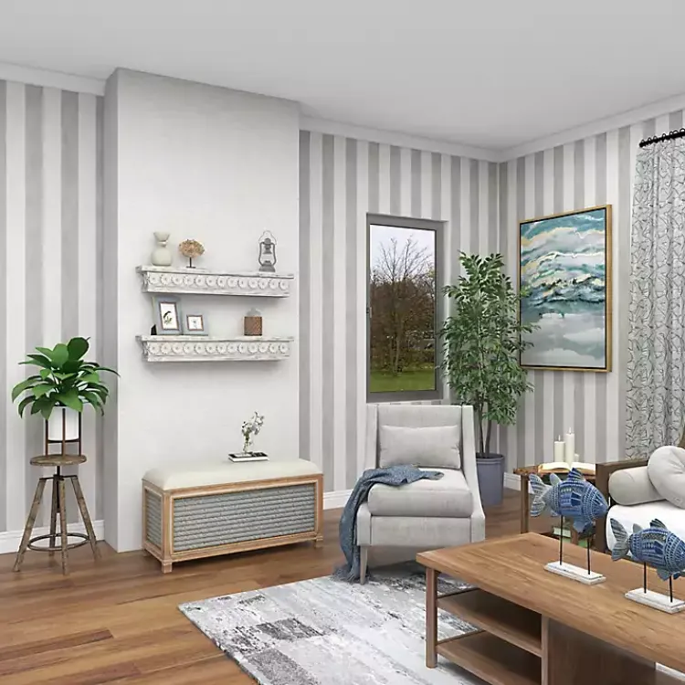 Embrace the beautifully carved design of our Ornate Farmhouse Wooden Wall Shelf. Its white washed finish and repeating floral will be sure to warm your entryway décor.