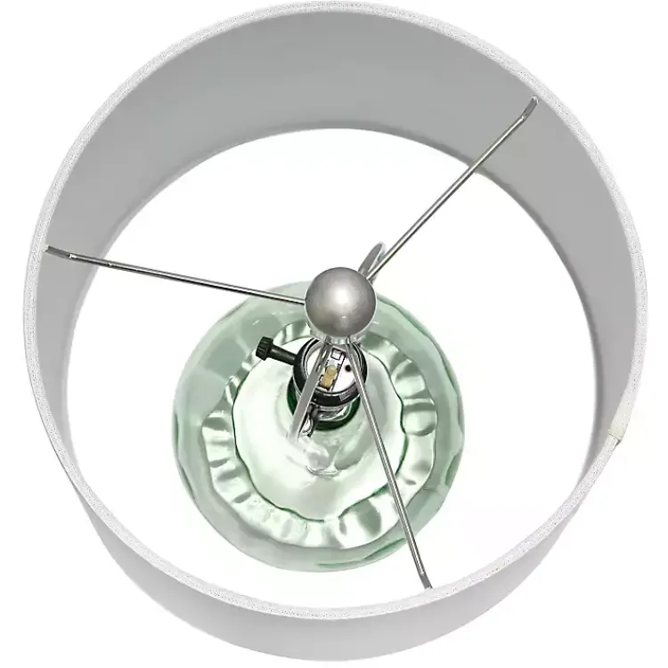 Illuminate your contemporary or coastal space with this Green Glass Ripple Table Lamp! You’ll adore how the light, sage hue adds a subtle pop of color to any tabletop.