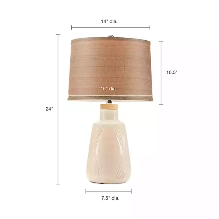 Fun details and unique style bring this Ivory Textured Ceramic Boho Table Lamp to life! This chic lamp can be used in a multitude of décor styles. The natural tan textured shade and round finial give this lamp a versatile look!