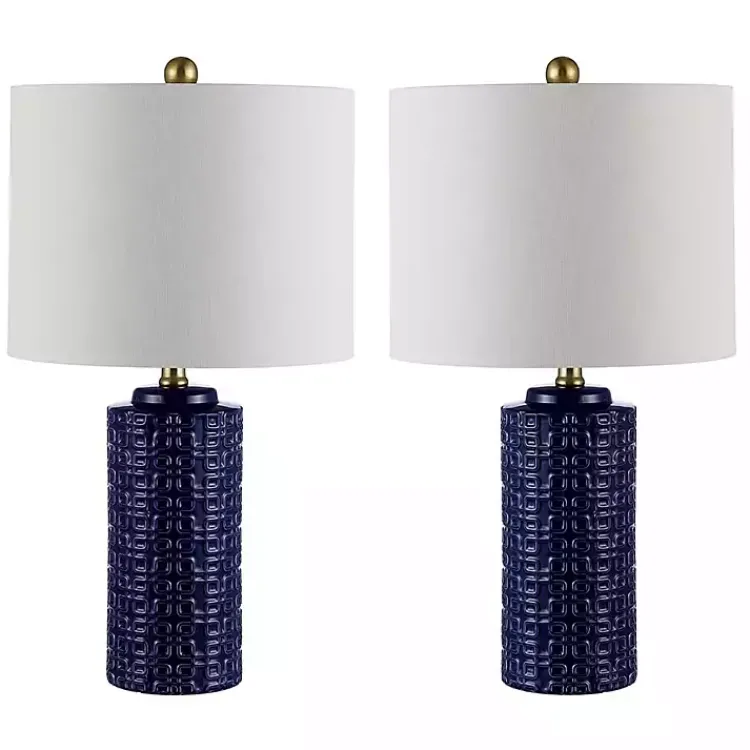 The set of Navy Ceramic Motif Table Lamps will look perfect on your entryway console table or bedroom nightstands. The raised geometric patterns add a modern-chic touch!