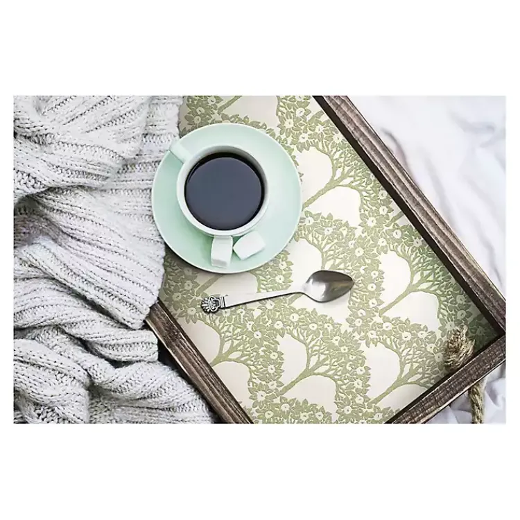 - Features a flowering tree botanical design