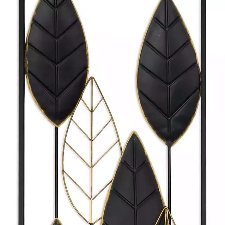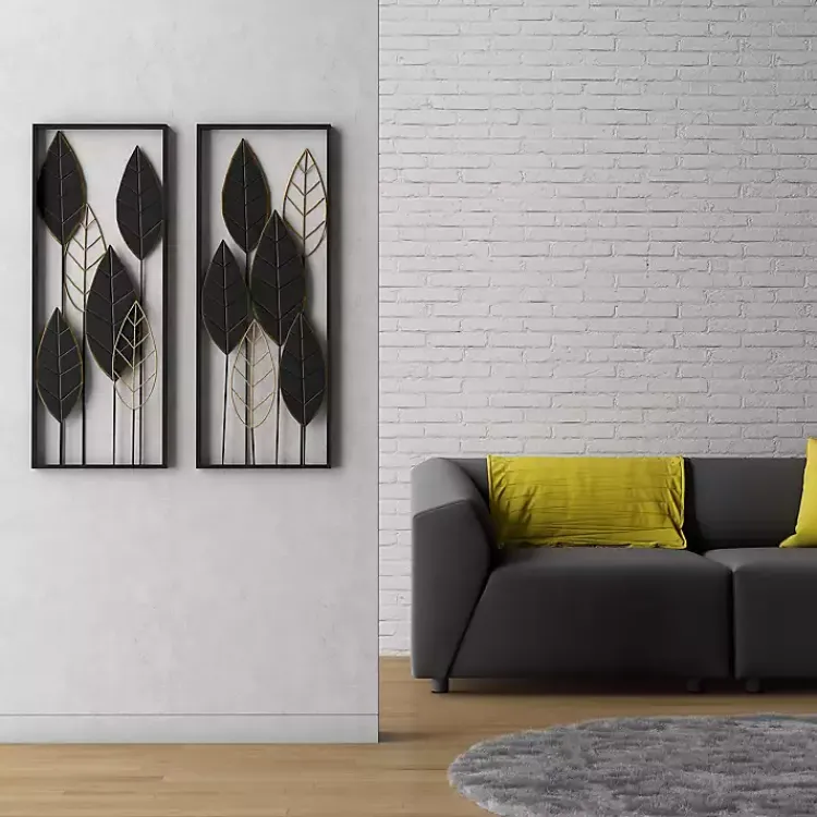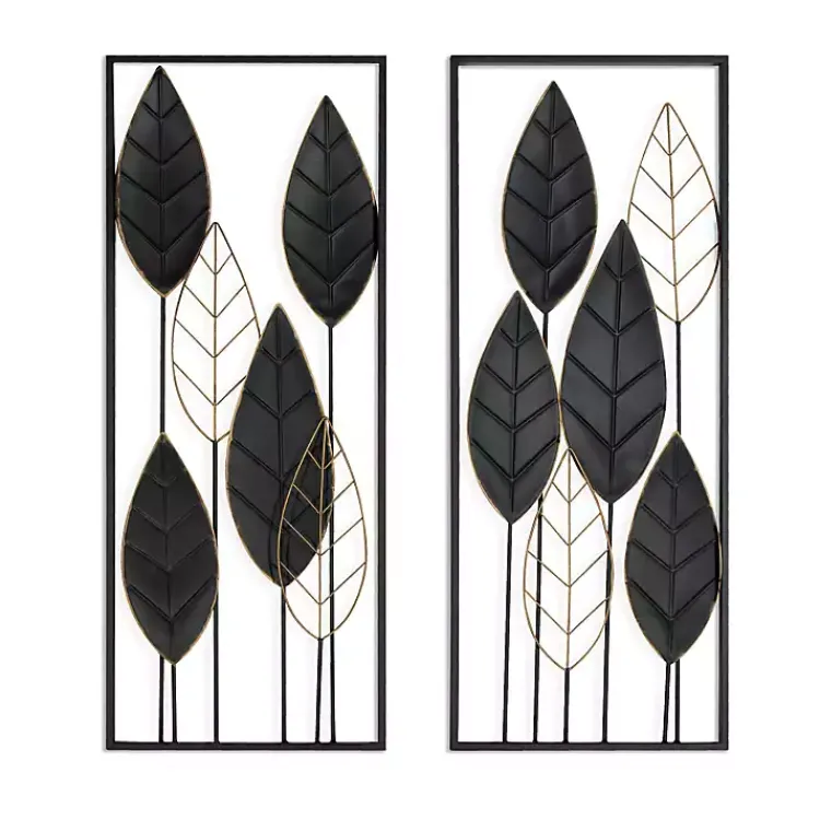 Set includes two (2) wall plaquesEach plaque measuresThis Black and Gold Metal Leaves Wall Plaque is a beautiful accent …