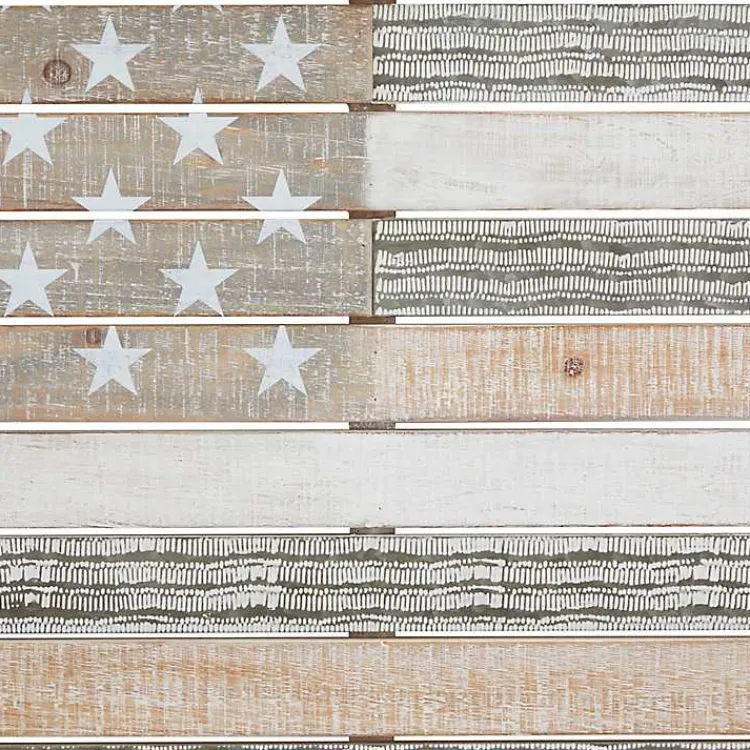 Add a pop of patriotism to your home with this Distressed Wood American Flag Wall Plaque. Its natural tones will beautifully complement rustic and modern farmhouse decors!