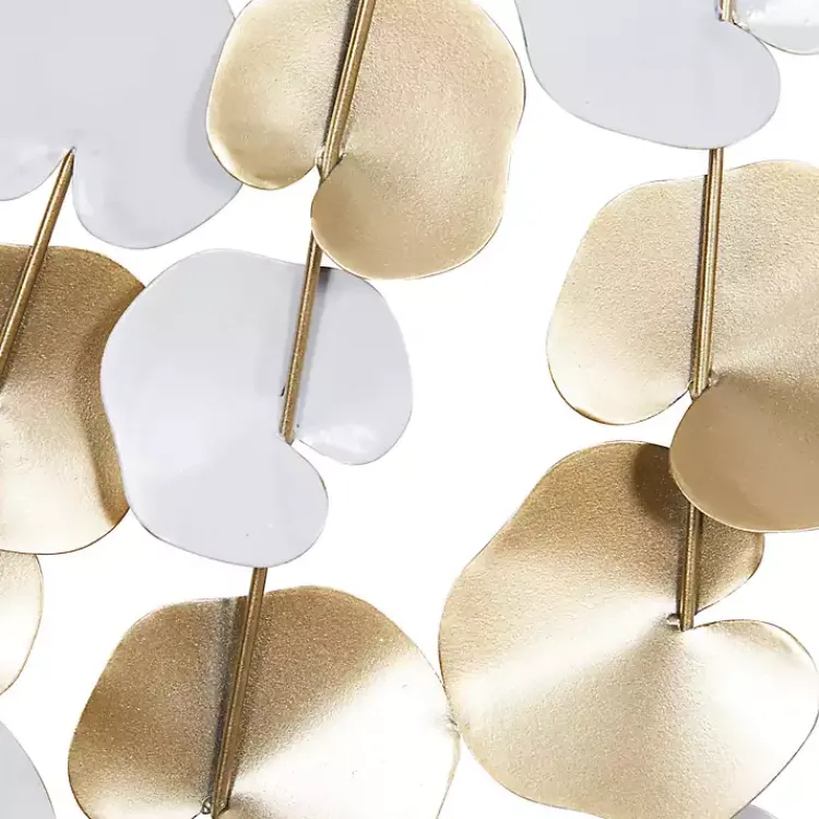 Add a natural element to your modern home decor with this Glossy Gold Leaves Framed Wall Plaque! The shining gold and white metal details would look great against a dark or neutral wall.